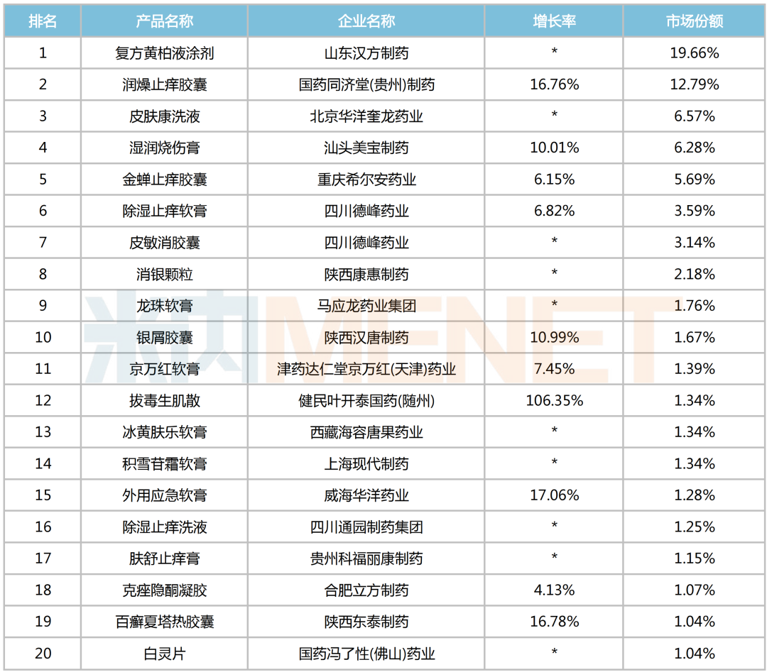 来源:米内网原创 2025-11-19 09:14皮肤科中成药