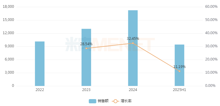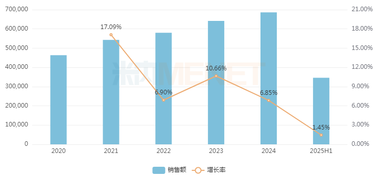 皮肤科中成药因其毒副作用较小、整体调节功能强、缓解症状效果稳定等优势而备受市场青睐。米内网数据显示,皮肤科中成药近年来在中国三大终端六大市场(统计范围详见本文末)销售额稳步攀升,2023年首度突破60亿元,2024年拿下创新高的近70亿元,2025H1继续保持增长至约35亿元。