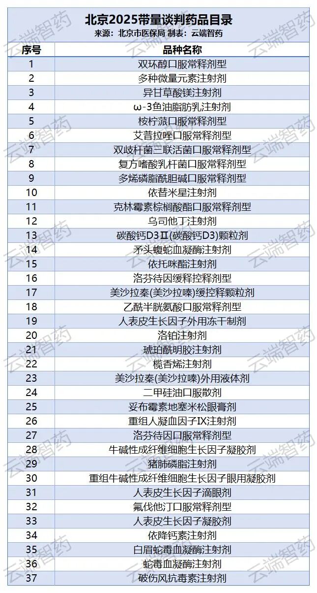 编辑说:11月18日,北京市医保局发出通知,公布2025年北京市《带量谈判药品目录》及《带量联动药品目录》的通知,其中联动目录69个品种,谈判目录37个品种。采购周期为3年。