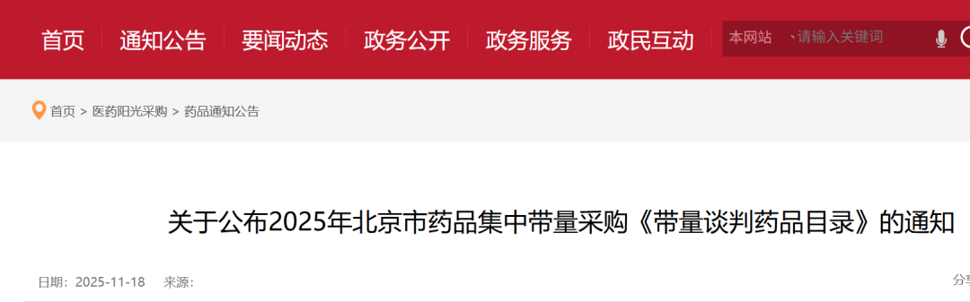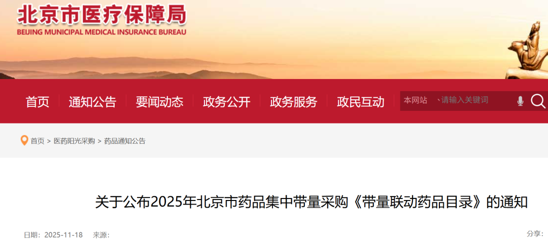 11月18日,北京市医保局发出《关于开展2025年北京市药品集中带量采购有关工作的通知》,该市将组织新一轮集采,采用带量联动和带量谈判的方式进行,采购目录将分批次公布。采购周期为3年。