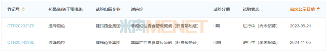 目前,健民药业在III期临床阶段的中药1.1类新药还有通降颗粒,该新药在2022年获得临床批件,2023年9月启动非糜烂性胃食管反流病(肝胃郁热证)II期临床,2024年11月启动同一适应症的III期临床。
