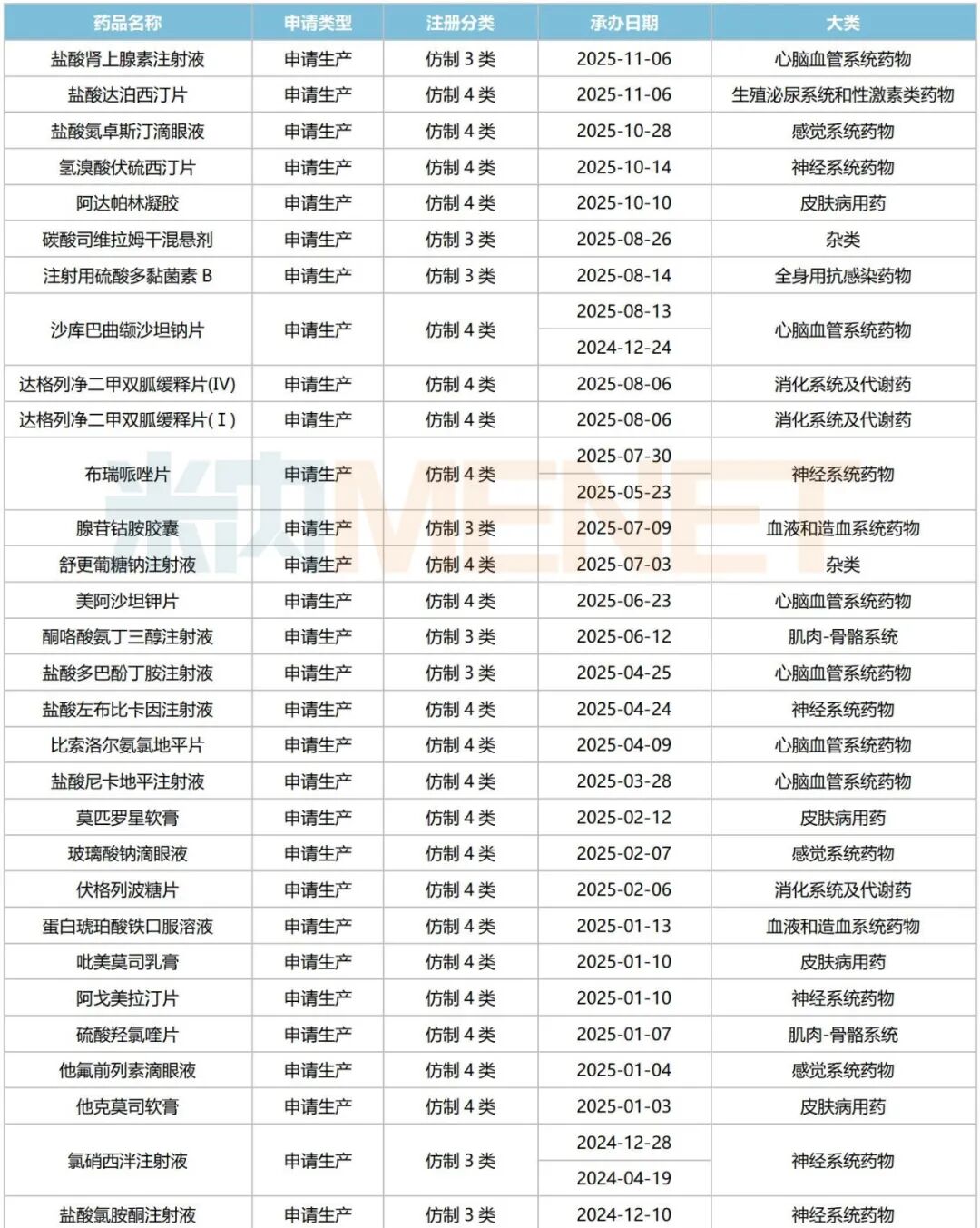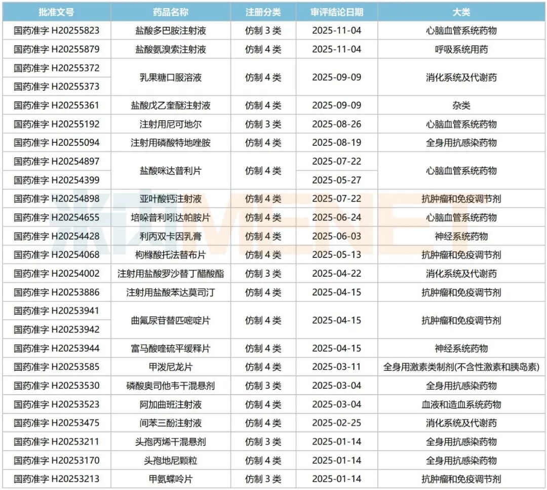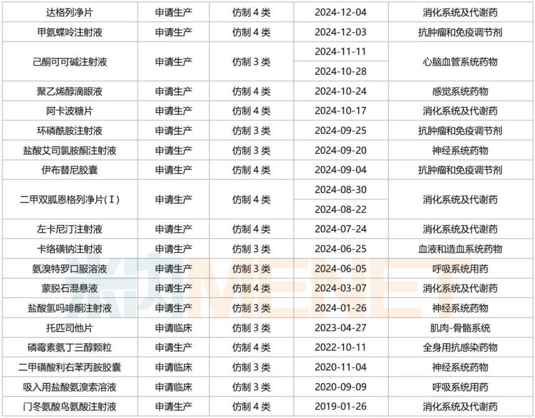 化药仿制药方面,22个品种获批生产并视同过评,涵盖9个治疗大类,其中抗肿瘤和免疫调节剂有5个,全身用抗感染药物、心脑血管系统药物各有4个,消化系统及代谢药有3个等。