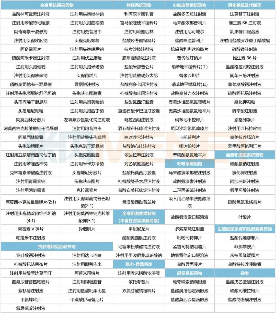 150个品种涵盖12个治疗大类,集中在全身用抗感染药物(49个)、神经系统药物(22个)、心脑血管系统药物(17个)、消化系统及代谢药(16个)、抗肿瘤和免疫调节剂(13个)等。