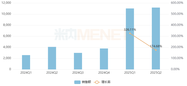 盐酸丙卡特罗吸入溶液在2025年上半年中国三大终端六大市场(统计范围详见本文末)突破2亿元销售规模,同比增长233.51%,销售额已超过2024年全年,是吸入剂(化+生+中)TOP17产品。