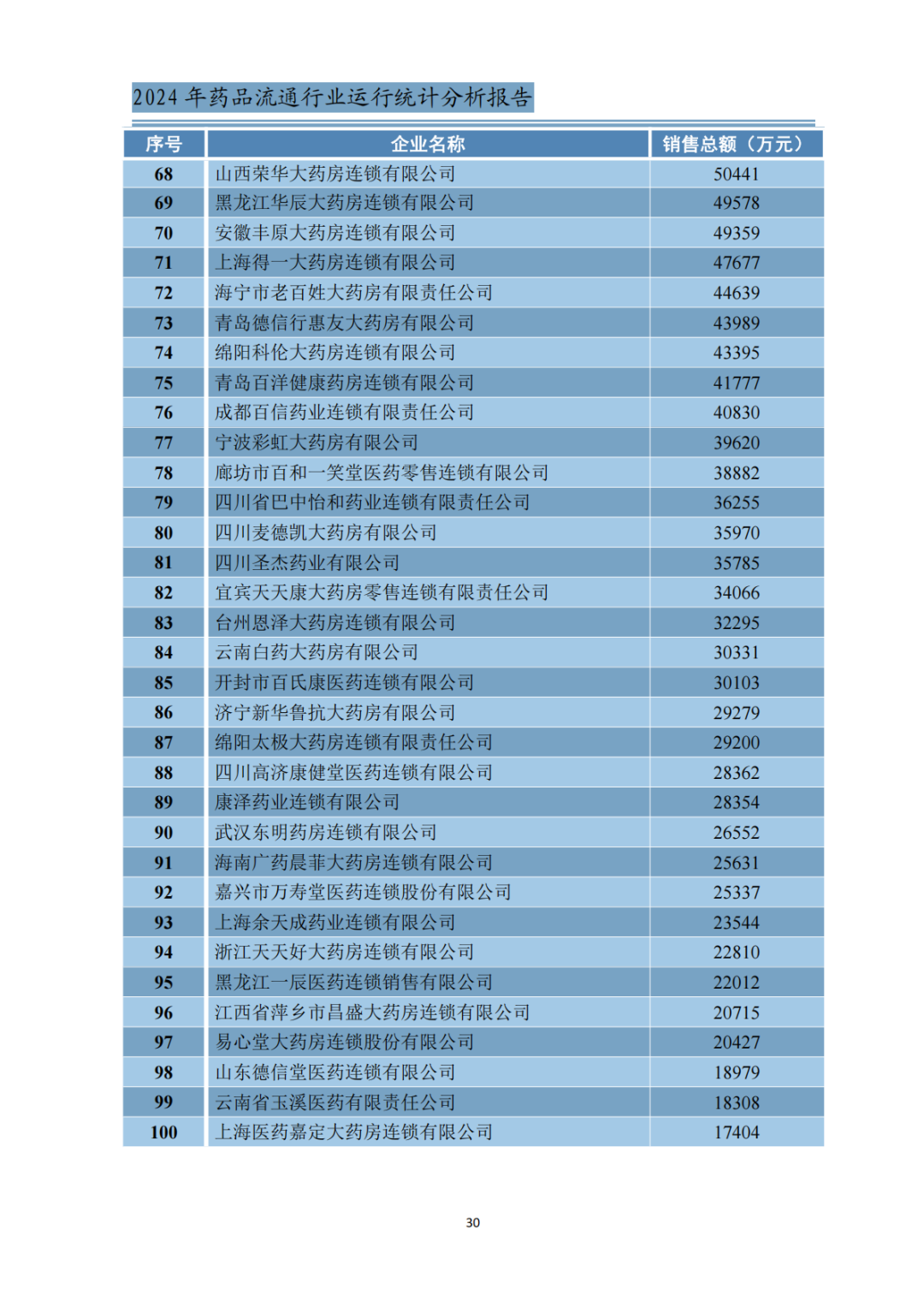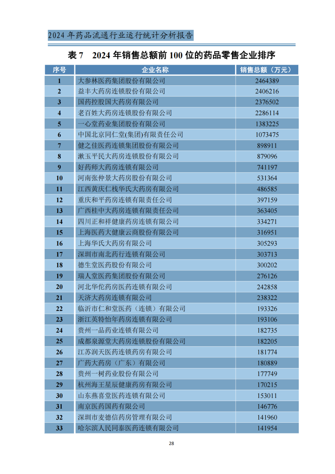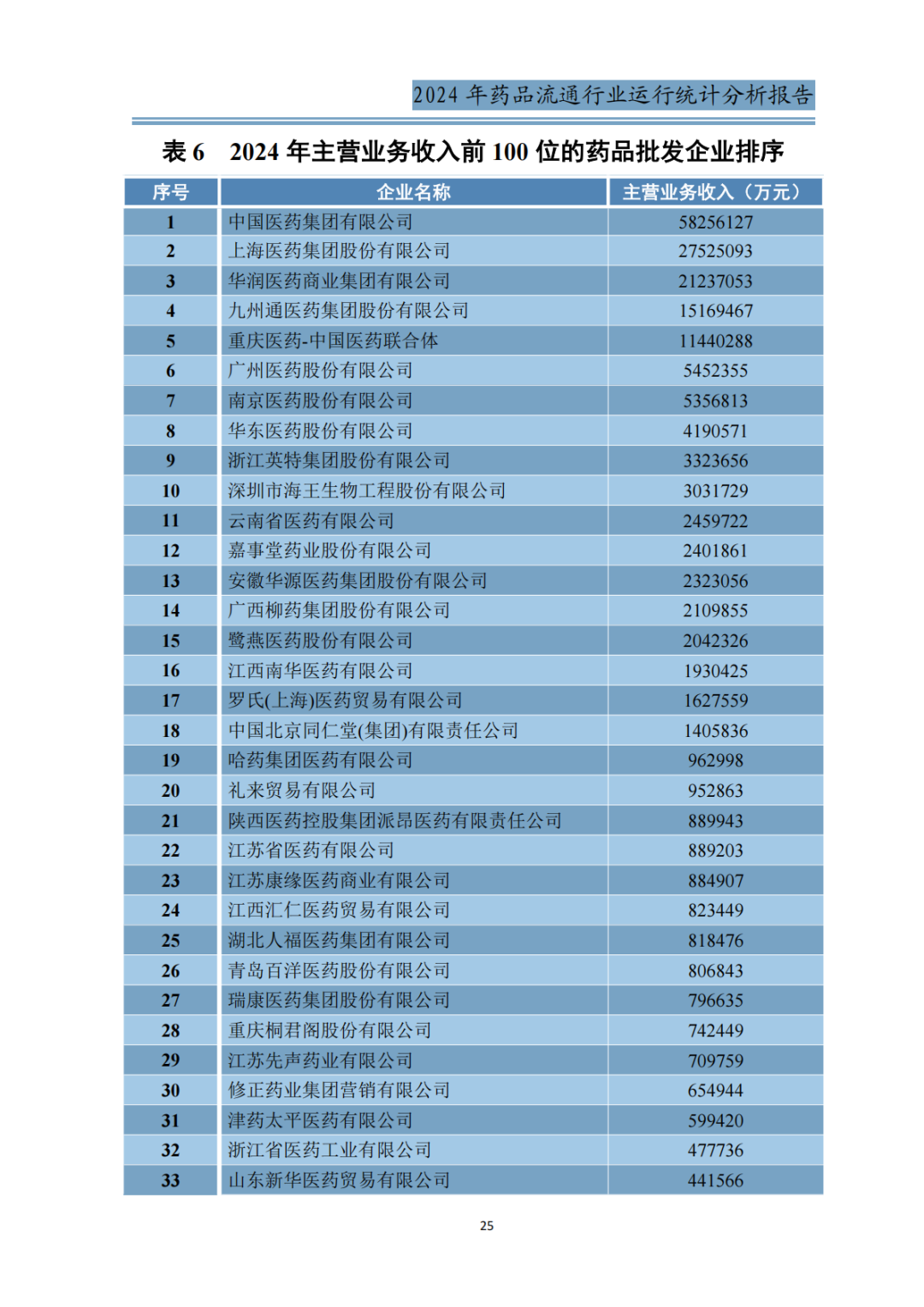 附:2024年主营业务收入前100位的药品批发企业、2024年销售总额前100位的药品零售企业