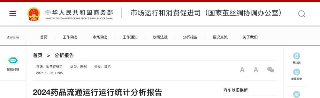 编辑说:12月8日,商务部消费促进司发布《2024药品流通行业运行统计分析报告》,揭示了过去一年医药流通行业的变局,同时还公布了2024年主营业务收入前100位的药品批发企业、2024年销售总额前100位的药品零售企业(附在文末)。