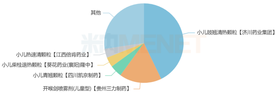 小儿豉翘清热颗粒、芩香清解口服液、小儿柴桂退热颗粒、小儿解表口服液、小儿热速清颗粒等均为儿科感冒中成药。其中,小儿豉翘清热颗粒为济川药业独家品种,具有疏风解表、清热导滞的功效,该药近年来在中国三大终端六大市场的销售额均达25亿元以上,在儿科感冒中成药品牌排名中稳居首位。