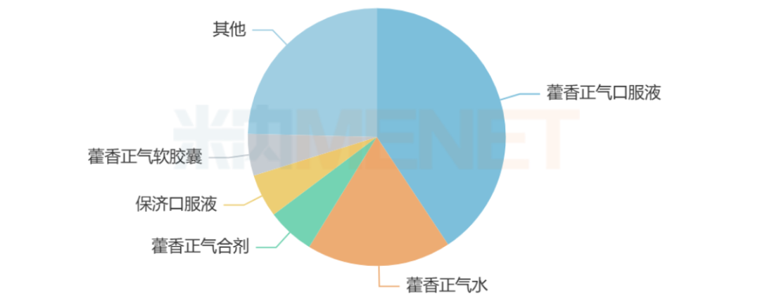 藿香正气口服液为国家医保甲类、OTC甲类品种,具有解表化湿、理气和中的功效,用于外感风寒、内伤湿滞或夏伤暑湿所致的感冒。近年来在中国三大终端六大市场祛暑剂产品排名中,藿香正气口服液稳居首位,从该药厂家格局看,太极集团近年来占比均超过99%。