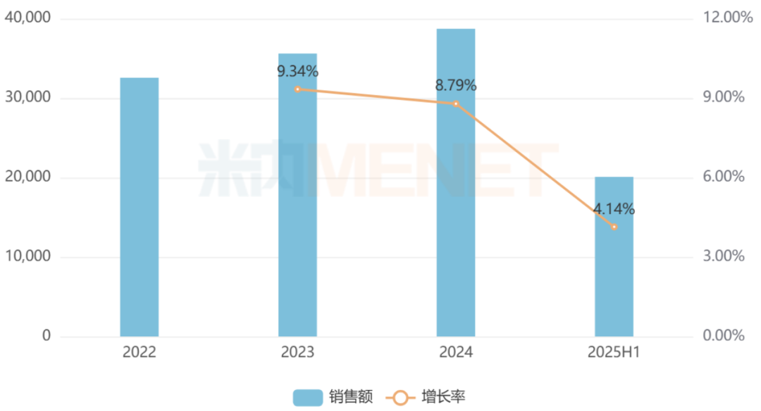 荆防颗粒为国家医保乙类、OTC甲类(双跨)品种,具有发汗解表、散风祛湿的功效,用于风寒感冒,头痛身痛,恶寒无汗,鼻塞清涕,咳嗽白痰等。近年来,荆防颗粒在中国三大终端六大市场的销售额呈逐年上涨态势,2024年超过3.8亿元,2025年上半年超过2亿元。从厂家格局看,山东新时代药业主导市场,销售占比超八成。