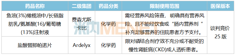 鱼油(3%)橄榄油中/长链脂肪乳/氨基酸(16)/葡萄糖(13%)注射液是一种全营养混合肠外营养制剂,在2024年12月获批进入中国市场,具有适用于2岁及以上儿童、含天然鱼油和橄榄油、可外周静脉输注三大特点,填补了目录空白。