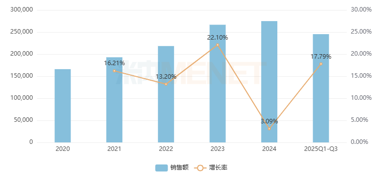 在中国城市公立医院、县级公立医院、城市社区中心及乡镇卫生院(简称中国公立医疗机构)终端,血液和造血系统化药的市场规模在2013-2019年呈现稳步增长态势,2020年大跌超过10%,随后进入跌宕起伏阶段,2023年曾突破1180亿元,近两年又出现了下滑态势,米内网最新数据显示,该类药物在2025年Q1-Q3跌幅达5.09%,整体销售规模为818亿元左右。