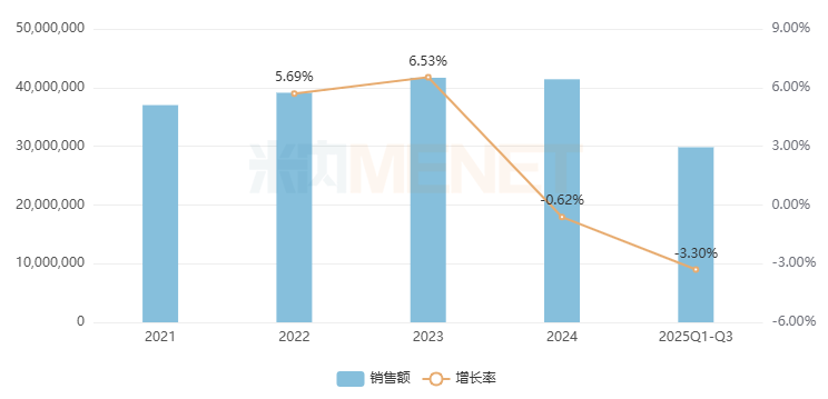 在中国三大终端六大市场(统计范围见文末),中成药的市场规模在2023-2024年达到了4100亿元以上,2025年Q1-Q3跌幅为3.30%,市场压力倍增。华润三九是中成药TOP1集团(二级),2025年Q1-Q3的市场份额高达5.56%,与TOP2集团的差距达到了2.61%,领军优势十分明显。