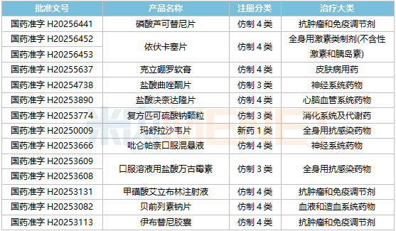 编辑说:日前,国家药监局官网显示,青峰医药的磷酸芦可替尼片和依伏卡塞片均以仿制4类报产同日获批。其中,芦可替尼2024年在全球销售额超过40亿美元,中国三大终端六大市场销售额超过8亿元。