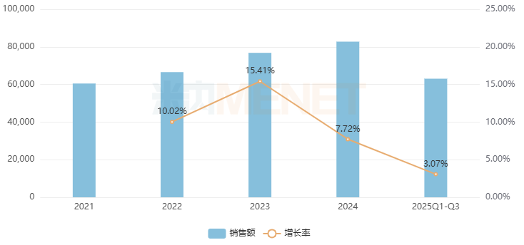 芦可替尼2024年在全球销售额超过40亿美元,中国三大终端六大市场(统计范围详见本文末)销售额超过8亿元,2025年Q1-Q3同比增长3.07%。