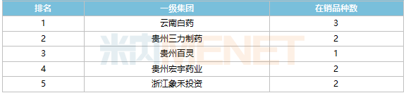 从集团层面来看,云南白药(云南白药气雾剂、肿痛气雾剂)、贵州三力制药(开喉剑喷雾剂(儿童型)、开喉剑喷雾剂)、浙江象禾投资(宽胸气雾剂、麝香祛痛气雾剂)各有2个上榜。