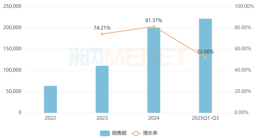 地舒单抗注射液是由安进开发的一款靶向RANKL的全人化单克隆IgG2抗体,用于治疗骨巨细胞瘤等,目前国内已有齐鲁、博安生物、泰康生物等多家企业的生物类似药获批。米内网数据显示,近年来中国公立医疗机构终端地舒单抗注射液的销售额均以两位数的增速持续增长,2025年前三季度超过22亿元,同比增长52%。