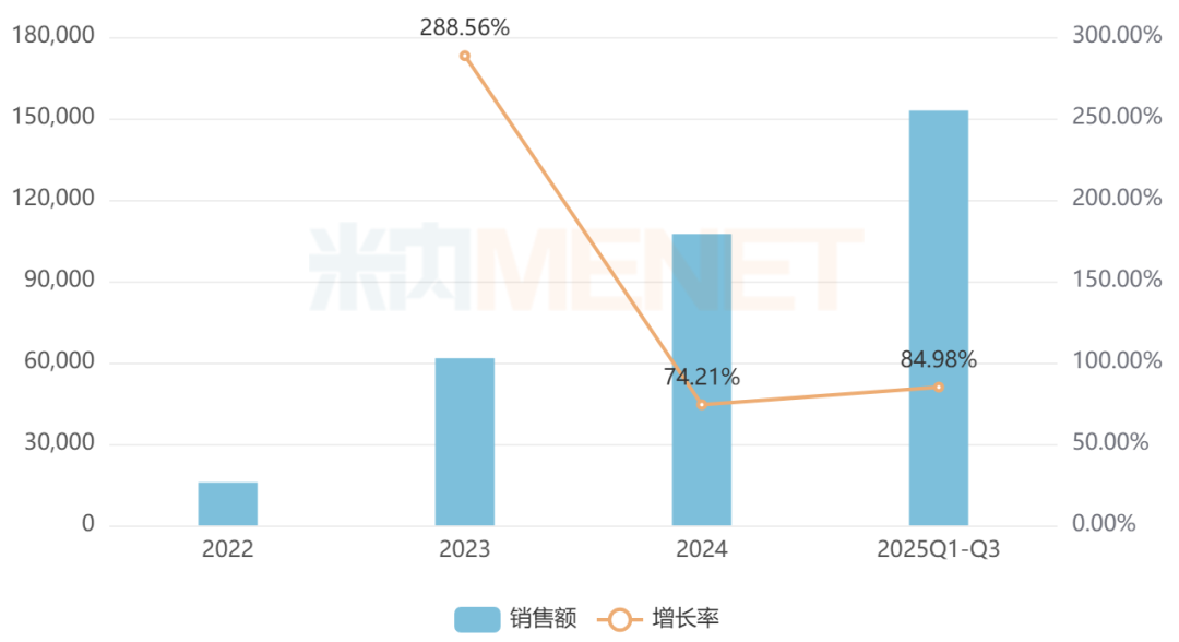 甲磺酸伏美替尼片是艾力斯开发的一款国产1类新药,属于第三代EGFR激酶抑制剂,最早于2021年3月获批上市,同年通过谈判纳入国家医保乙类目录,2022年在中国公立医疗机构终端销售额就突破1亿元,此后持续放量,2025年前三季度超过15亿元。