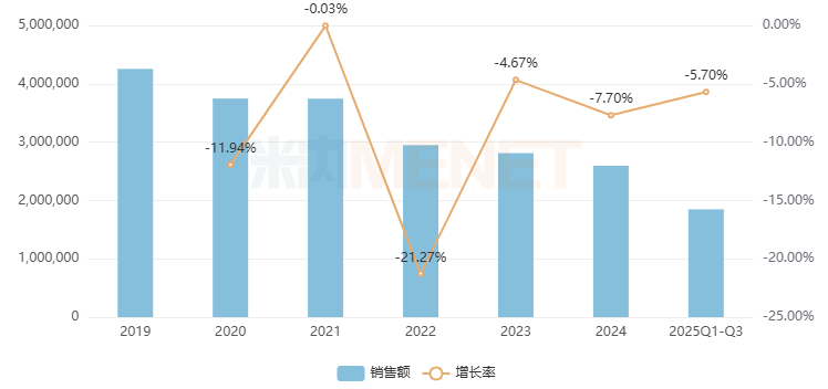 消化溃疡已成为临床常见病之一,相关药物的需求量正在不断上升,但受政策持续影响,近几年在中国城市公立医院、县级公立医院、城市社区中心及乡镇卫生院(简称中国公立医疗机构)终端,治疗与胃酸分泌相关疾病的药物市场已出现“六连跌”,2025年Q1-Q3仅剩185亿元左右,全年或将跌破250亿元,市场危机四伏。