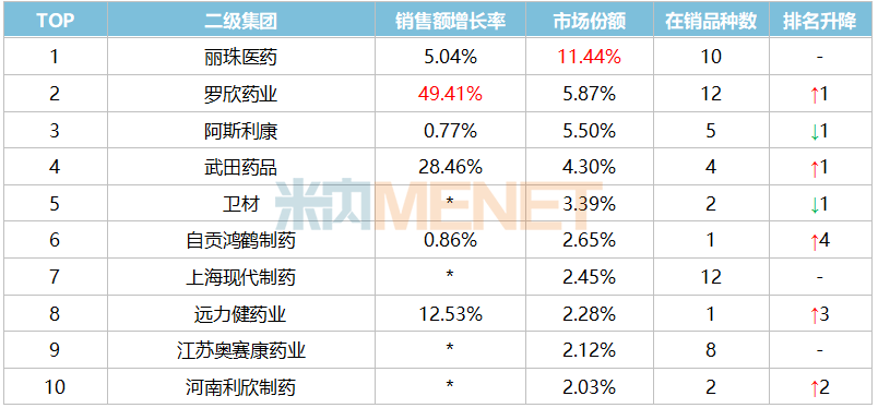 丽珠稳守龙头,罗欣首进TOP2,8个国产品牌涨势喜人