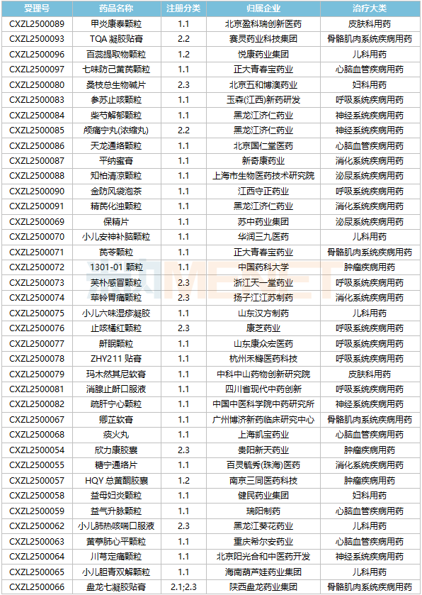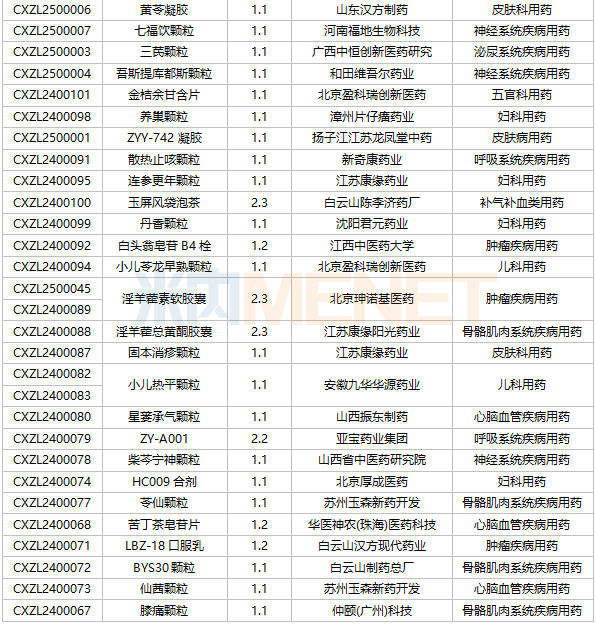 13款中药1类新药中,包括江苏康缘药业的苏辛通窍颗粒、北京星昊医药的疏肝解郁颗粒、石家庄以岭药业的小儿连花清感颗粒、国药同济堂(贵州)制药的郁枢达片等。