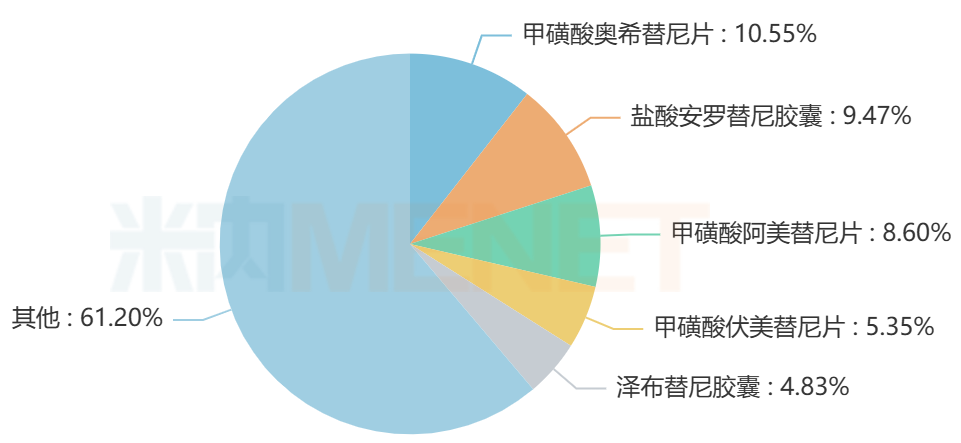 甲磺酸阿美替尼片为翰森制药的独家1类创新药,属于第三代EGFR-TKI,适用于非小细胞肺癌(NSCLC)成人患者的一线治疗。在中国城市公立医院、县级公立医院、城市社区中心及乡镇卫生院(简称中国公立医疗机构)终端,该药2022-2024年销售额增速均达两位数,2025Q1~Q3继续以31.24%的增速增长至超24亿元,为蛋白激酶抑制剂(化 生)TOP3产品。