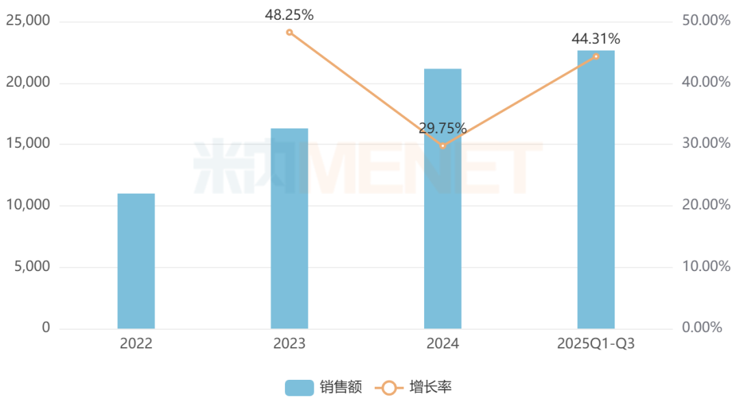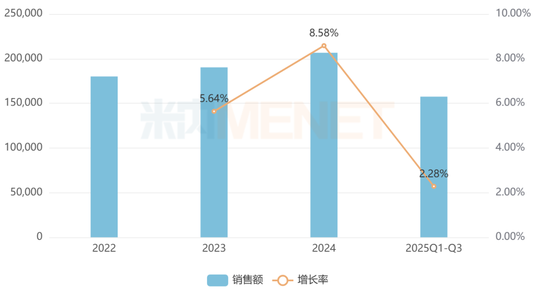 生白口服液为国家医保乙类品种,具有温肾健脾、补益气血的功效,用于癌症放、化疗引起的白细胞减少属脾肾阳虚,气血不足证候者。该药近年来在中国公立医疗机构终端的销售额均以两位数的增速增长,2025年前三季度超过2亿元,同比增长约44%。