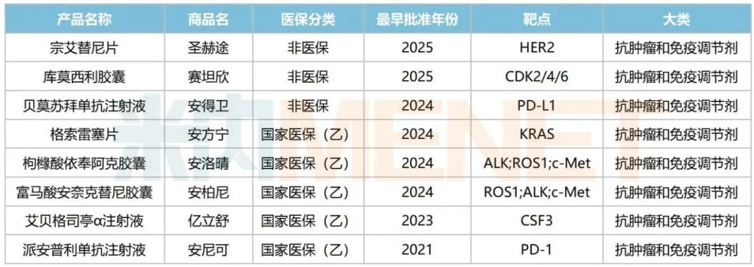 近5年来(2021年至今),正大天晴药业已有8款1类新药在国内获批上市(含合作商业化),均为抗肿瘤和免疫调节剂,涵盖PD-(L)1、ALK、ROS1、KRAS、CDK2/4/6、CSF3、HER2等靶点。