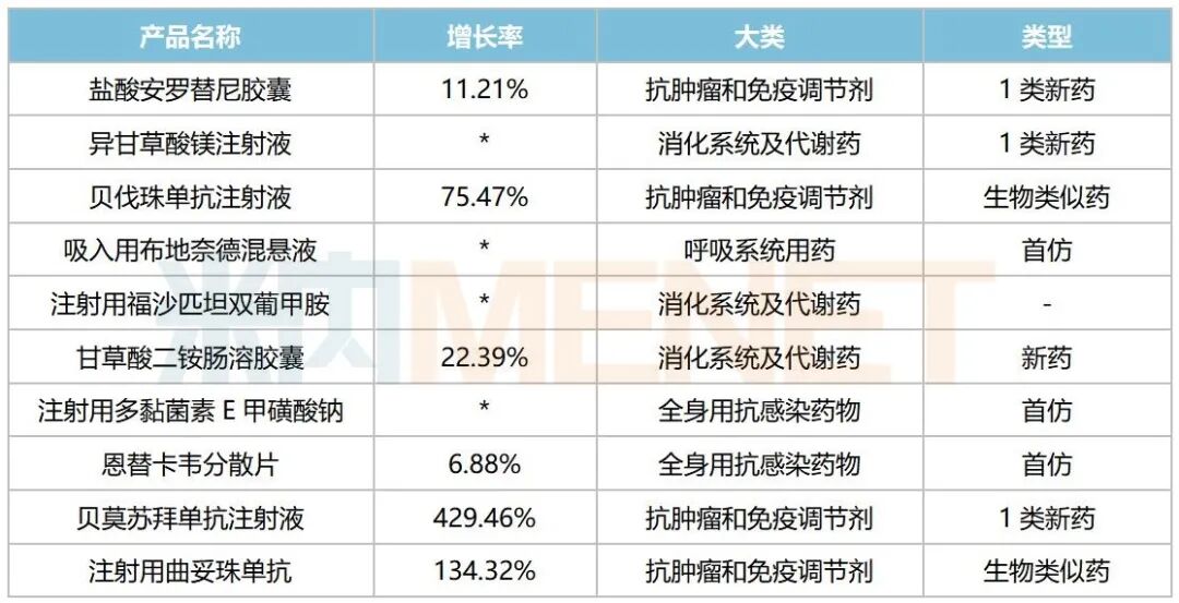 生物类似药中,贝伐珠单抗注射液、注射用曲妥珠单抗、利妥昔单抗注射液、阿达木单抗注射液等销售额分别超过6亿元、4亿元、3亿元、2亿元,分别同比增长75.47%、134.32%、43.68%、87.19%。