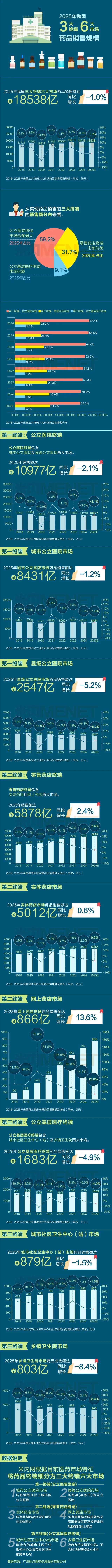 【米内独家预测】2025年我国三大终端六大市场药品销售额18538亿,同比下滑1%