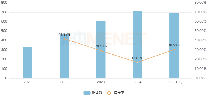 米内网数据显示,近年中国网上药店市场药品销售规模快速扩容,2024年突破700亿元大关;2025年Q1-Q3同比增长超过30%,全年有望再创新高。