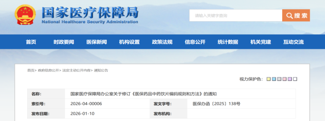 2026年1月10日,医保局正式发布《医保药品中药饮片编码规则和方法》。编码结构由4部分调整为6部分,在保留四个核心要素基础上,新增2个关键字段,一是新增“道地药材标识码”,用于标识饮片原药材是否为国家或省级道地药材,清晰体现饮片质量层次,为“优质优价”提供支撑;二是新增“企业码”,明确饮片企业信息,为后续开展中药饮片集中采购、实现全链条追溯管理奠定基础。