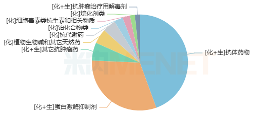 在中国三大终端六大市场,抗肿瘤药(化+生)2024年销售规模超1500亿元;2025Q1~Q3继续以9.93%的增速增长至近1300亿元,从小类格局上看,抗体药物(化+生)、蛋白激酶抑制剂(化+生)各以超44%和31%的份额领跑市场。