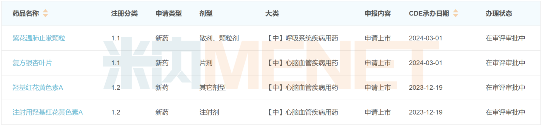 目前,悦康药业已有3款中药1类新药报产在审、上市可期。其中,1.2类新药注射用羟基红花黄色素A(羟基红花黄色素A)具有活血化瘀的功效,拟用于急性缺血性脑卒中;1.1类新药复方银杏叶片功能主治活血化瘀通络,拟用于瘀血阻络引起的胸痹、心痛、中风等;1.1类新药紫花温肺止嗽颗粒拟用于感染后咳嗽、化痰、平喘等。据米内网预测,其均有望于2026年2月获批上市。