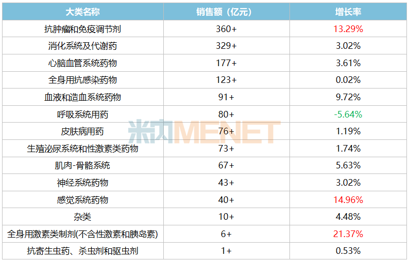 西药市场一路高歌猛进,仅1个大类出现下滑