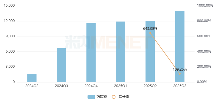 贝莫苏拜单抗注射液是正大天晴南京顺欣制药的1类新药,该产品上市后在中国城市实体药店潜力爆发,2024年Q2-Q4合计销售额接近2亿元,2025年Q1-Q3暴涨356.94%,销售额已超3.7亿元,一跃成为抗体药物TOP10产品。