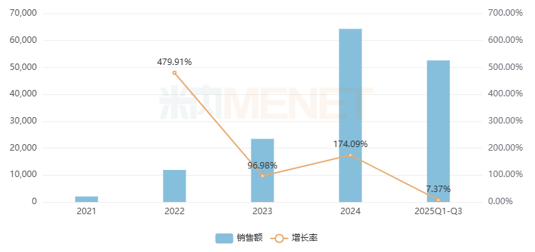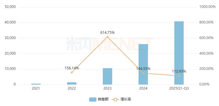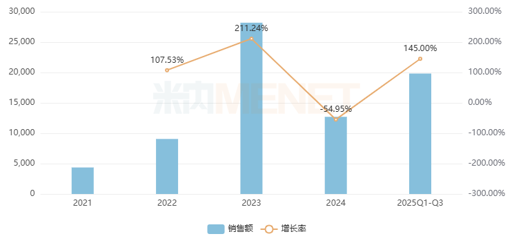 仁合益康集团的葡萄糖酸钙锌口服溶液是2019年获批的新品,上市后在中国城市实体药店大放异彩,2022-2025年Q1-Q3连续增长了156.14%、614.75%、146.55%、112.93%,销售额在2025年Q1-Q3达到了4亿元,跃升为矿物质补充剂TOP6品牌。