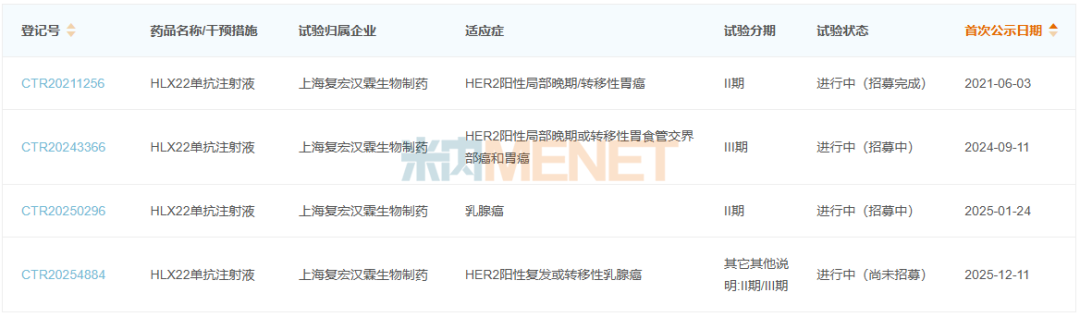 HLX22单抗注射液为复星医药许可引进并后续自主研发的新型靶向HER2的单克隆抗体,该新药用于治疗HER2阳性局部晚期或转移性胃食管交界部癌和胃癌的III期临床正在进行中,而用于治疗HER2阳性复发或转移性乳腺癌的II期/III期临床在2025年年底正式启动,该新药或将成为集团下一个报产的抗肿瘤1类新药。