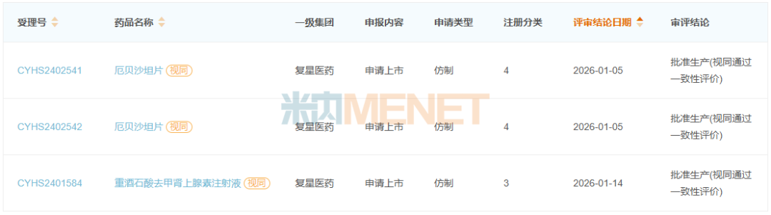 2026年刚开局,复星医药陆续拿下了厄贝沙坦片和重酒石酸去甲肾上腺素注射液两款新品,为集团在高血压用药、心脏病治疗用药两个亚类市场增添了重磅成员。