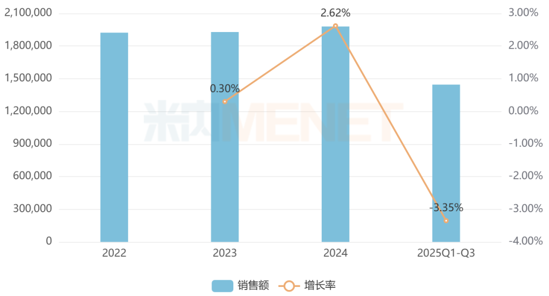 米内网数据显示,2022-2024年中国三大终端六大市场(统计范围详见本文末)妇科中成药销售额均超过190亿元,2025年前三季度超过140亿元,同比略有下滑。从治疗亚类看,以妇科炎症用药、妇科调经药为主,占比均超过30%。