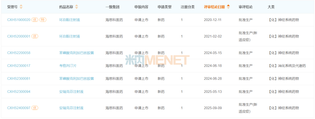 截至目前,海思科已累计有4款1类新药获批,均为化学药。2020年获批的麻醉1类新药环泊酚注射液,2024年在中国三大终端六大市场的销售额已突破10亿元,2025年Q1-Q3涨至12.8亿元。2024年获批的止痛1类新药苯磺酸克利加巴林胶囊,2025年Q1-Q3增长率高达2680.19%,糖尿病1类新药考格列汀片2025年Q1-Q3增长率为839.16%。