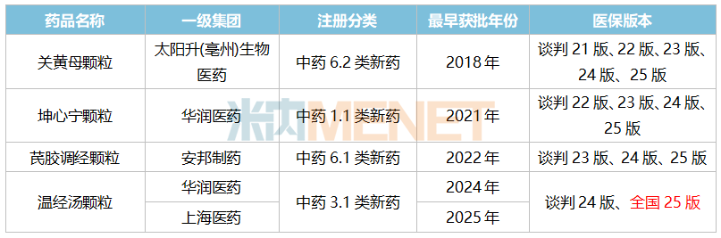 2025版国家医保目录已于2026年1月1日起实施,2024年获批上市的妇科中药3.1类新药温经汤颗粒正式转入医保常规目录。