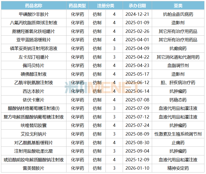 甲磺酸沙非胺片、八氟丙烷脂质微球注射液、蔗糖羟基氧化铁咀嚼片、亚甲蓝肠溶缓释片、佩玛贝特片、西达本胺片、呋喹替尼胶囊已有原研/国产原研上市销售,未有国产仿制药获批,而左卡尼汀咀嚼片、艾拉戈利钠片、雷美替胺片则未在国内市场上市销售。