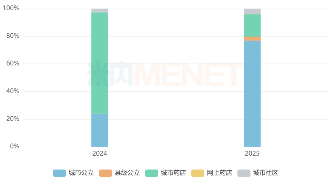 米内网数据显示,2024年中国三大终端六大市场甲磺酸贝舒地尔片销售额超过2000万元,城市实体药店为主要销售渠道;2025年其销售额突破1亿元,同比增长约483%,城市公立医院为主要销售渠道。