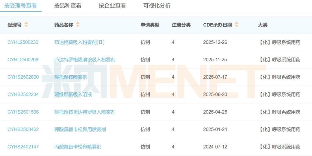 富马酸福莫特罗吸入溶液是齐鲁制药获批的首款吸入剂。在该剂型上,公司还有7款产品以新注册分类申报在审,均为呼吸系统用药,其中糠酸氟替卡松鼻用喷雾剂、噻托溴铵奥达特罗吸入喷雾剂、瑞维那新吸入溶液、噻托溴铵喷雾剂、茚达特罗格隆溴铵吸入粉雾剂、茚达格莫吸入粉雾剂(Ⅱ)均暂无仿制药获批。