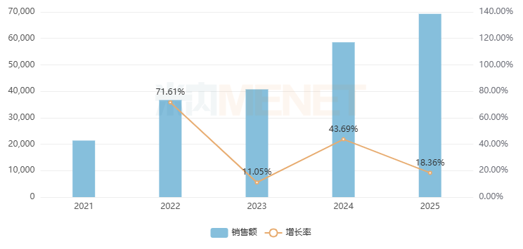 通天口服液是头痛药(偏头痛)市场TOP2产品,2025年增长了18.36%,销售额首次升至6.9亿元以上,从销售渠道来看,城市公立医院的占比为39.01%,城市社区中心的占比为18.58%,县级公立医院近几年的占比逐步提升,2025年升至17.39%。
