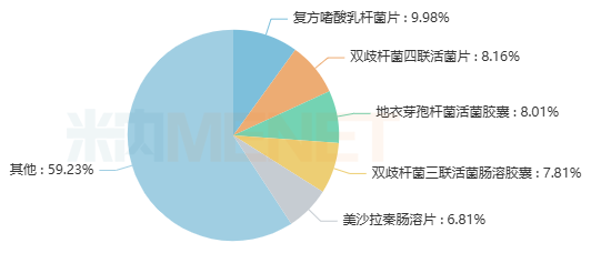 复方嗜酸乳杆菌片为金马药业的独家复方制剂,用于肠道菌群失调引起的肠功能紊乱,如轻型急性腹泻等,为国家医保乙类药、OTC乙类品种。在中国城市公立医院、县级公立医院、城市社区中心及乡镇卫生院(简称中国公立医疗机构)终端,该药2023-2024年销售额均在9亿元以上;2025年拿下创新高的超10亿元,同比增长8.3%,为止泻药、肠道抗炎/抗感染药(化 生)TOP1产品。