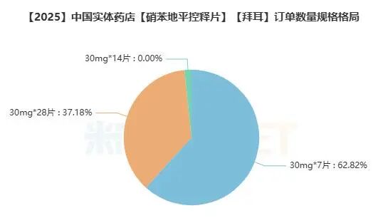 店均毛利率近年来波动比较明显,2025年再度跌至-0.5%。按订单数量统计包装规格占比,30mg*7片最为畅销,市占比约六成;30mg*28片位居其后,市占比超三成,可见小包装更受欢迎。