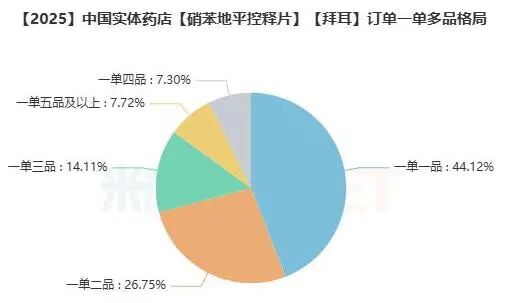 涉及拜新同的订单约44.12%为一单一品,余下的订单里,一单二品占比最高,为26.75%。
