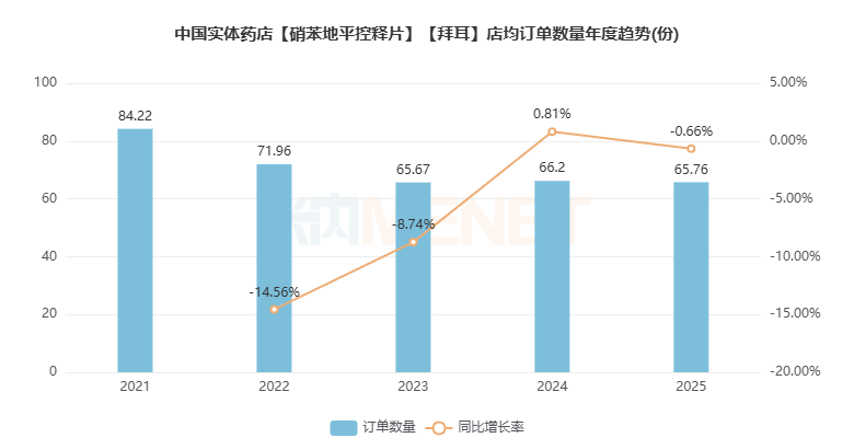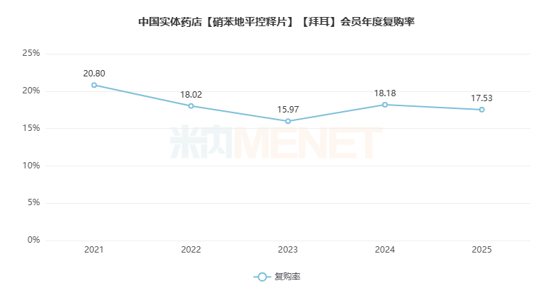 编辑说:米内小票格局数据分析结果显示,受国家集采影响,原研药拜新同2025年在院外零售药店市场实现店均销售金额同比增长、销售均价重现上涨且动销铺货率持续攀升,但店均订单数量小幅下滑、店均毛利率转负等情况。其消费者以中老年群体为主,消费贡献度男性与女性基本持平;购买行为呈现会员年度复购率略有下降、人均购买频次缓慢提升,会员客单价回升而客品数逐年下滑的趋势。关联购买数据表明,拜新同的购买场景集中在心脑血管疾病的联合用药管理,和晖致的阿托伐他汀钙片、阿斯利康的琥珀酸美托洛尔缓释片搭配联用较为普遍。这为药店的品类布局和关联销售提供了明确的数据支持。