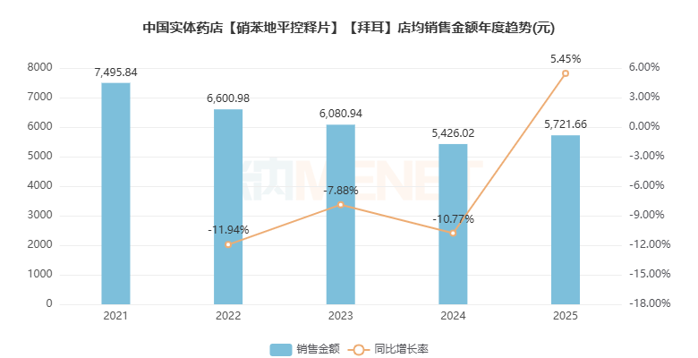2025年,拜新同店均销售金额为5721.66元,同比增长5.45%。
